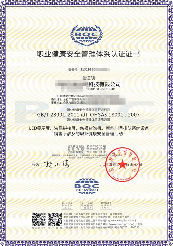 北京質(zhì)信認(rèn)證有限公司安徽分公司